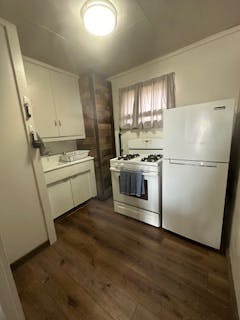 One Bedroom apartment with sectional couch, 2 Queen Beds and 1 Twin Bed. Kitchenette with stove, full-size fridge, self serve coffee pot, and microwave. Fully equipped Kitchen, just bring your fixins. Stand up/Walk-in Shower in bathroom includes blow dryer, iron and ironing board. Dinette in kitchen with seating for 2. Dinette in living room with seating for 3.